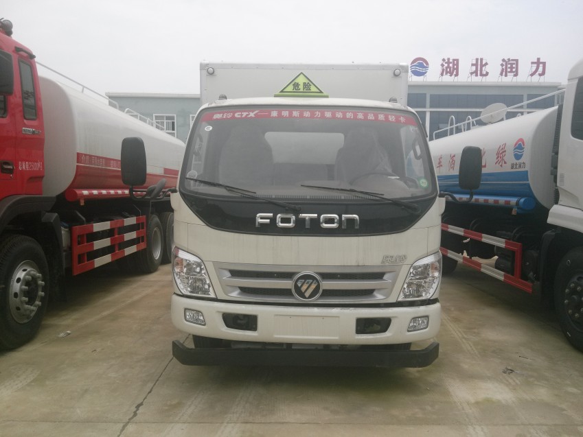 湖北潤力福田奧鈴腐蝕性物品廂式運輸車,運輸介質(zhì):單獨包裝的氨溶液(氨水)或甲醛溶液或除銹磷化液(除銹磷化處理劑)或電池電池液或木餾油。類項號:8類。
